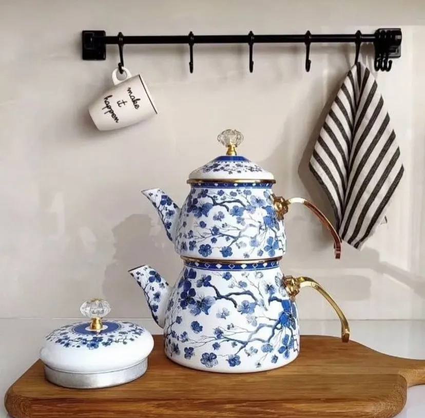 کتری قوری لعابی لولهای برند شاهین با بدنه سفید و طرح گلهای آبی، محصولی زیبا و آرامشبخش ساخت ترکیه است که ترکیبی از طراحی سنتی و عملکرد حرفهای را ارائه میدهد. بدنه این کتری از لعاب با ورق ضخیم و سنگین ساخته شده و مقاومت بسیار بالایی در برابر حرارت، ضربه و استفاده روزمره دارد. رنگ سفید ملایم همراه با گلهای آبی ظریف، حس آرامش و لطافت را به محیط آشپزخانه و میز سرو چای شما منتقل میکند و تجربه نوشیدن چای را دلنشینتر میسازد.