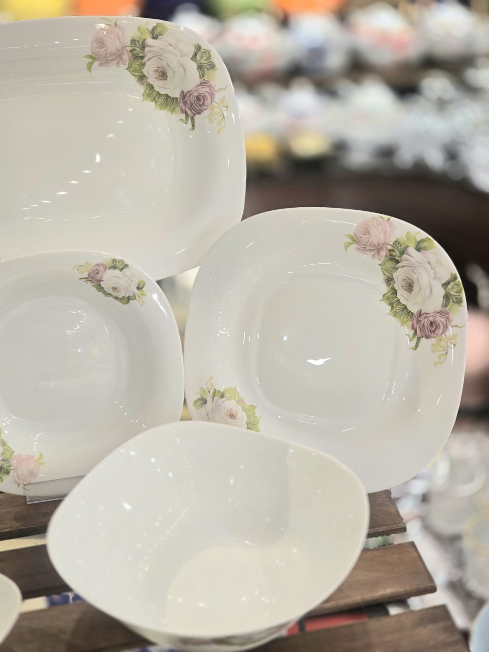 6 عدد پلوخوری، 6 عدد خورشت خوری، 6 عدد پیشدستی، 6 عدد پیاله، 1 عدد دیس بزرگ و 1 عدد کاسه بزرگ